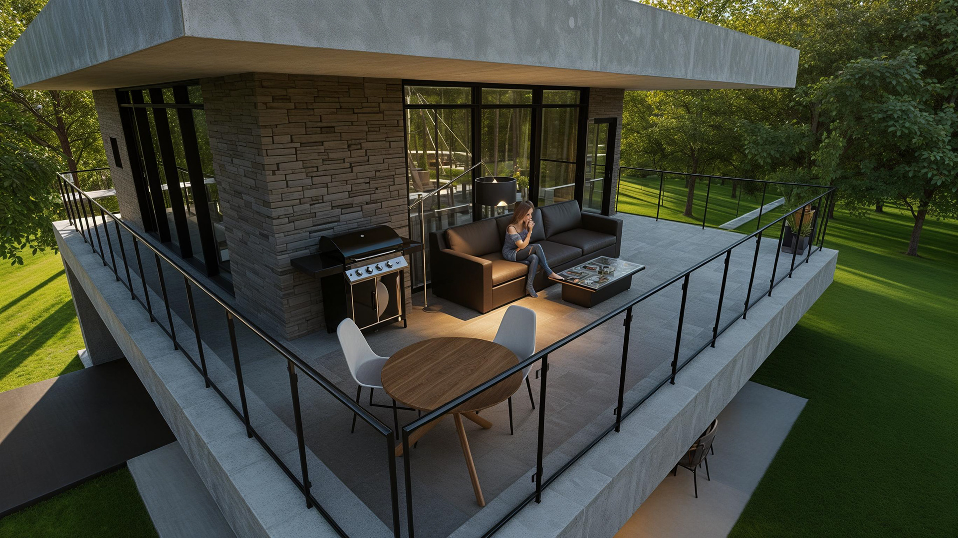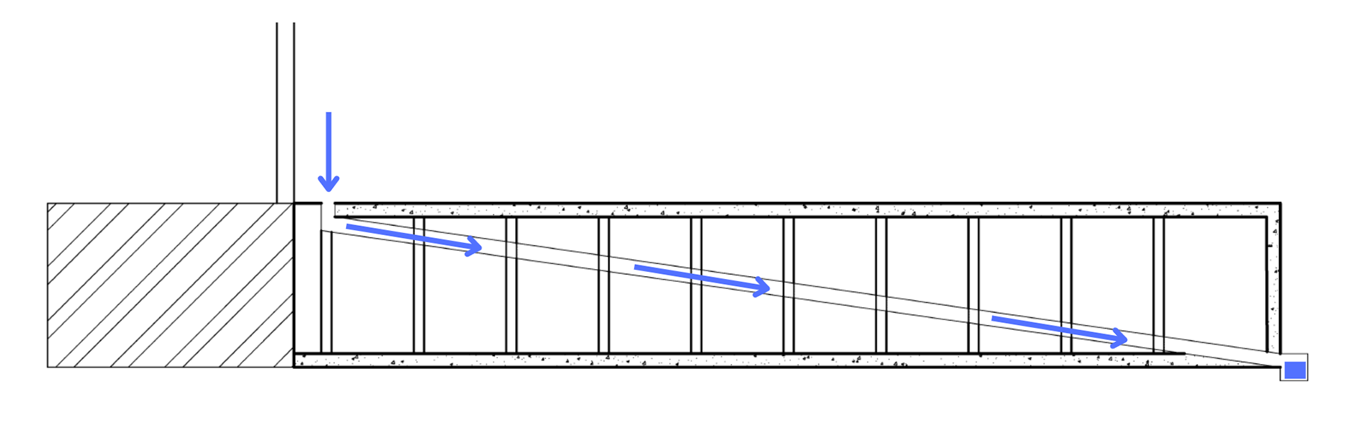 The water flows down this slope, which leads to a concealed gutter system located at the base of the balcony. The gutter system is seamlessly integrated into the overall design, hidden from view yet fully capable of efficiently channeling the water away from the building’s foundation.